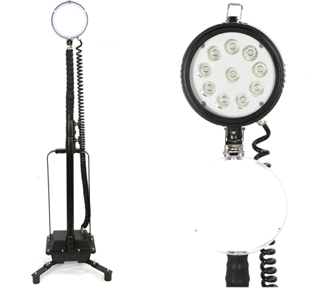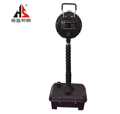 為方便可多角度任意調節照射方向,研發生產BJ665型號防爆移動工作燈:能固定在氣墊式升降架上1.15-1.75米高度范圍內任意升降,升降桿和電池箱為一體式結構,使用方便靈活,燈體底部裝有方便移動的輪子,可在平地上輕松移動燈體位置