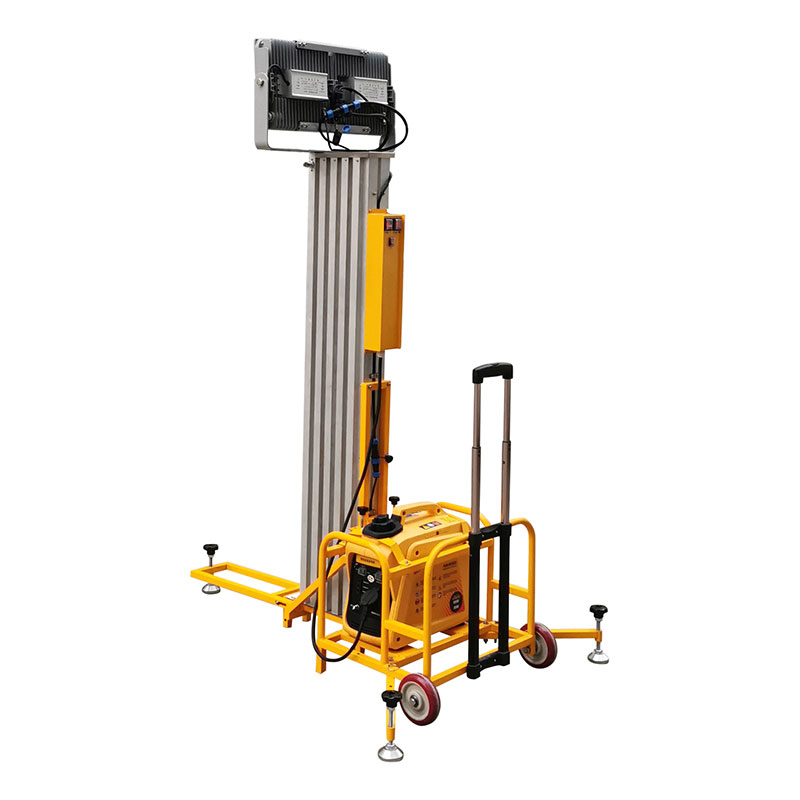 1.本產品由燈盤組件、桅桿組件、發電機組件和底座組成,整體模塊結構,燈盤、桅桿、底座組件可快速拆卸,實現 “行李箱式”托運,底座裝有定向輪和伸縮式拉桿,可手拉推行,快捷、高效、安全、經濟。