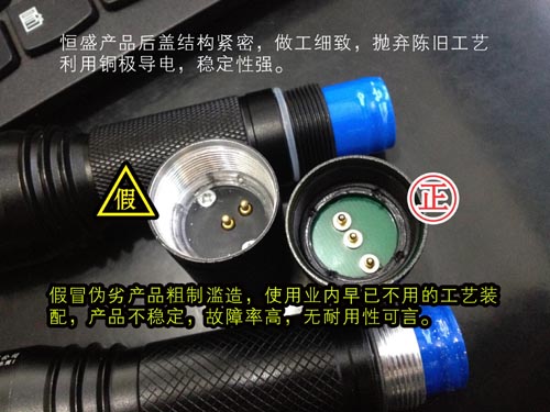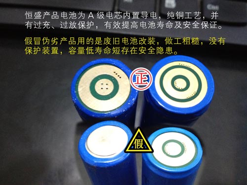 恒盛牌JW7623|JW7620佩戴式強(qiáng)光照明燈選用A級(jí)電芯,并加有過充過放保護(hù)裝置。假冒偽劣JW7620佩戴式強(qiáng)光照明燈| JW7623多功能強(qiáng)光巡檢工作燈選用廢棄電池,并沒有任何防護(hù)功能,有安全隱患。