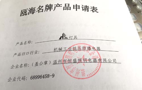 繼獲得開發區“先進企業”,“區專利示范企業”,“市科技創新企業”,“省科技創新企業”,經各級單位層層推選,確認恒盛照明企業產品將申請“甌海名牌產品”。