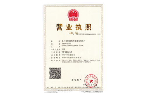 應相關管理部門的要求,也是恒盛照明企業(yè)運營所需。本月公司辦理了營業(yè)執(zhí)照、組織機構代碼證、稅務登記證、社會保險登記證和統(tǒng)計登記證“五證合一”營業(yè)執(zhí)照。