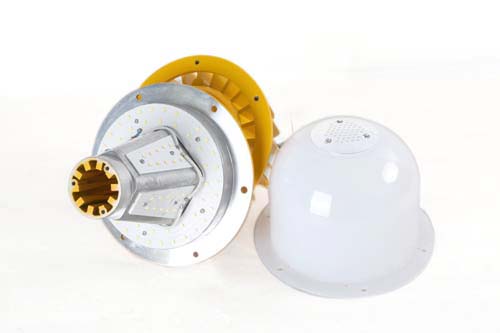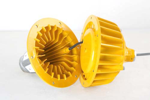 市場上也有類似該款固態防爆照明燈的喇叭形散熱器,只不過他們設計光溜溜的圓錐形,恒盛照明企業技研部門加入創新理念,設計成五邊形,增加了散熱面積的同時還創新的在五邊都安裝有5*10顆LED的鋁基板。