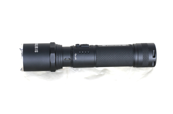 ◆ 前置開關,強光、工作光與爆閃開關區(qū)域分開。微電腦控制3段式調光(強光-工作光-爆閃)大開關輕觸轉換強光、工作光或點射。小開關實現爆閃,爆閃光在30米以內能使人瞬間致盲,達到警戒和個人防衛(wèi)作用。