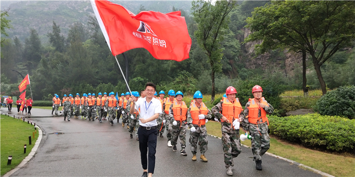 同時(shí)我們溫州恒盛照明電器有限公司也參與演練和展會(huì),恒盛照明在下防汛辦指揮協(xié)同下,在下雨中高舉旗子同防汛同志一起演練。