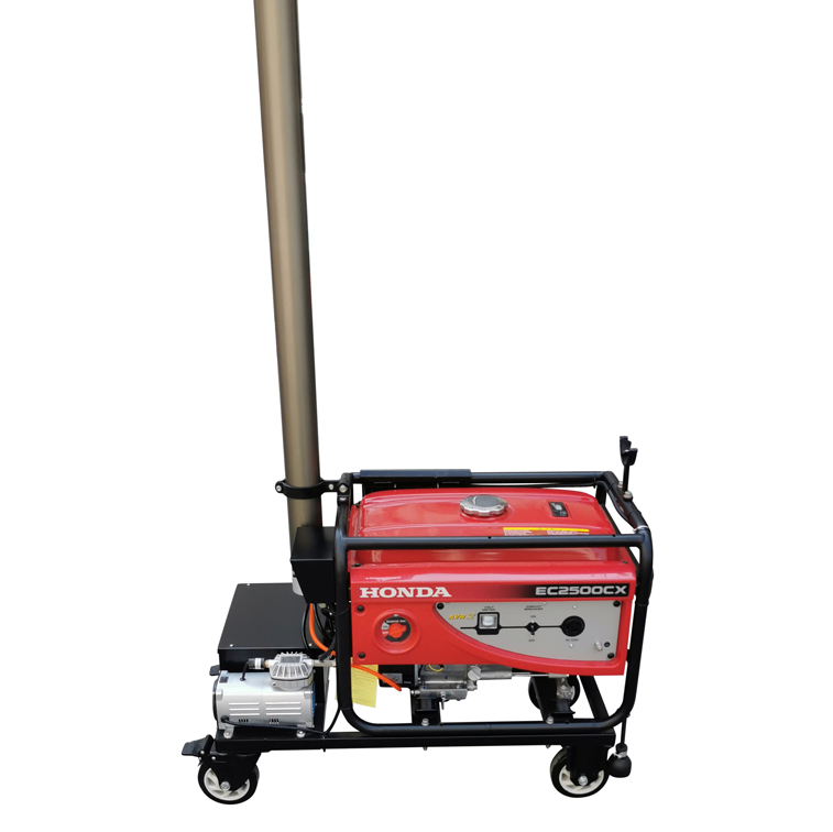 4.狹窄的地方能可靠固定;燈具燈盤、氣缸和發電機組為整體結構,發電機組底部裝有萬向輪并可選配安裝鐵軌輪,可在坑洼不平的路面及鐵軌上運行。