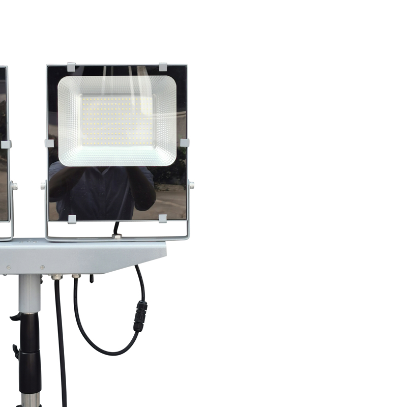 3.選用2節伸縮氣桿作為升降調節方式,最大升起高度為3米;上下轉動燈頭可調節光束照射角度,燈光覆蓋半徑達到50-100米
